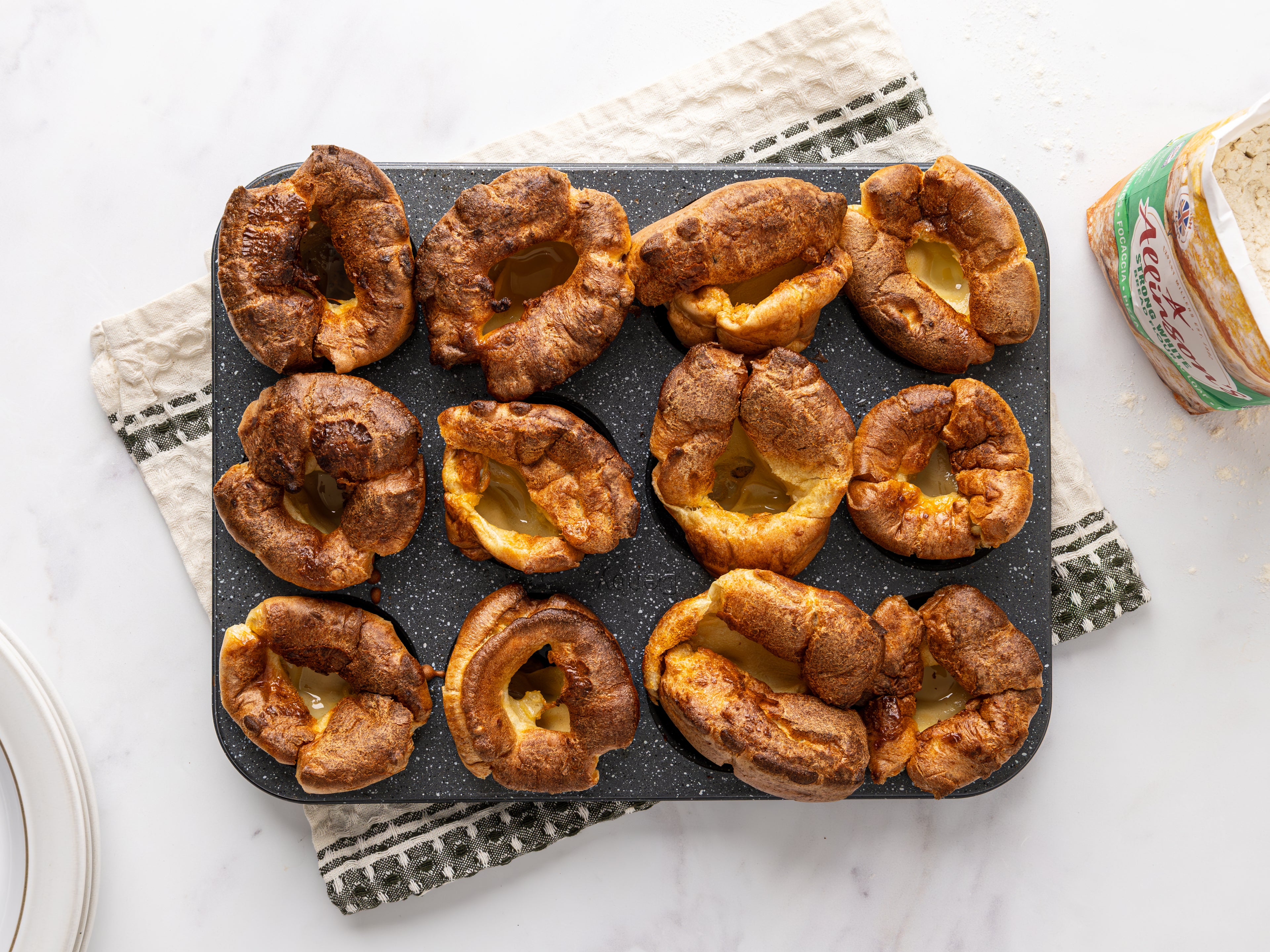 ⭐Strong white bread flour results in crispier puds